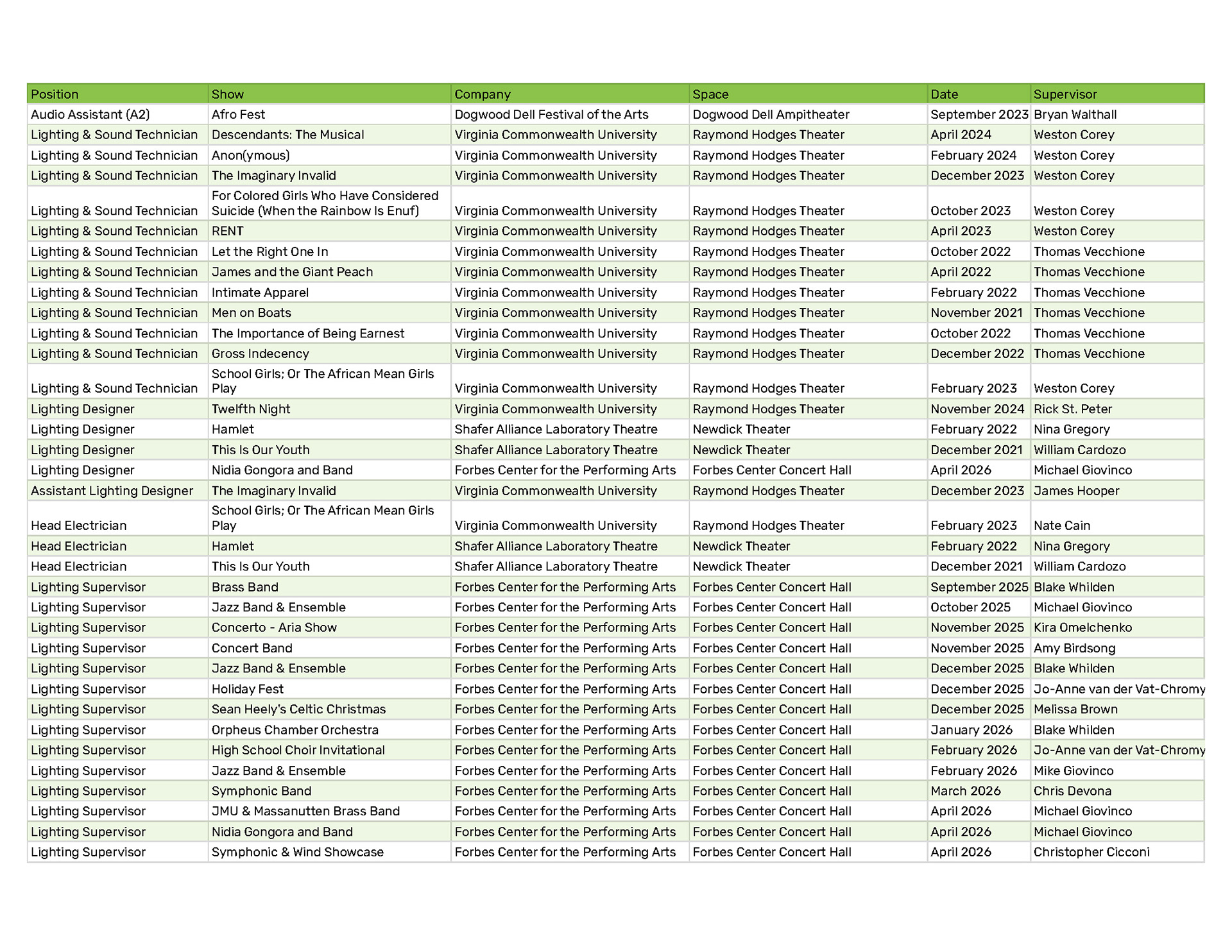 New Media (Video, Projections) and Lighting Design for Live Entertainment and Theatre